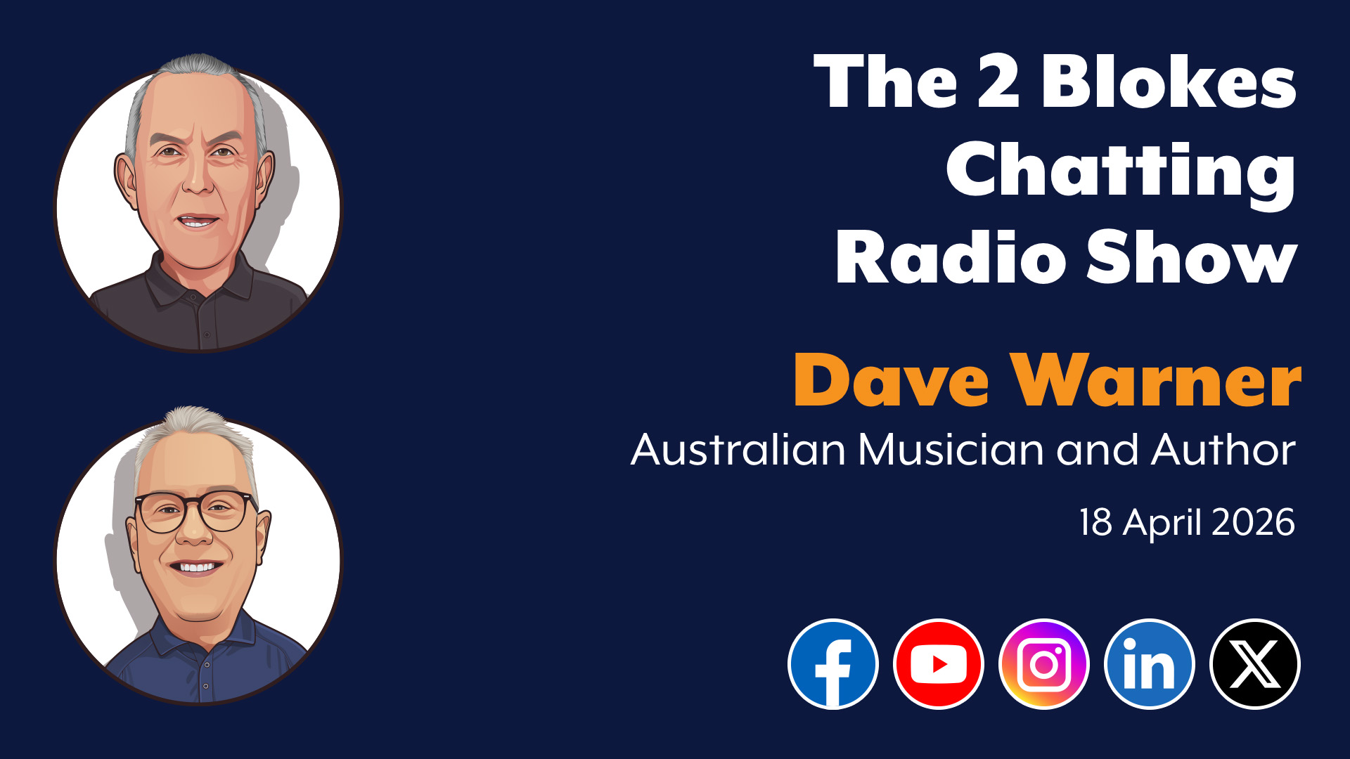 But this is just a subset of the conversations we have had over the journey. We have established a 2 Blokes Chatting YouTube channel which provides a veritable smorgasbord of interviews and conversations recorded on The 2 Blokes Chatting Radio Show since March 2020. We would encourage you to visit the channel and Subscribe - it doesn't cost anything but it does let you know when we upload new interviews.